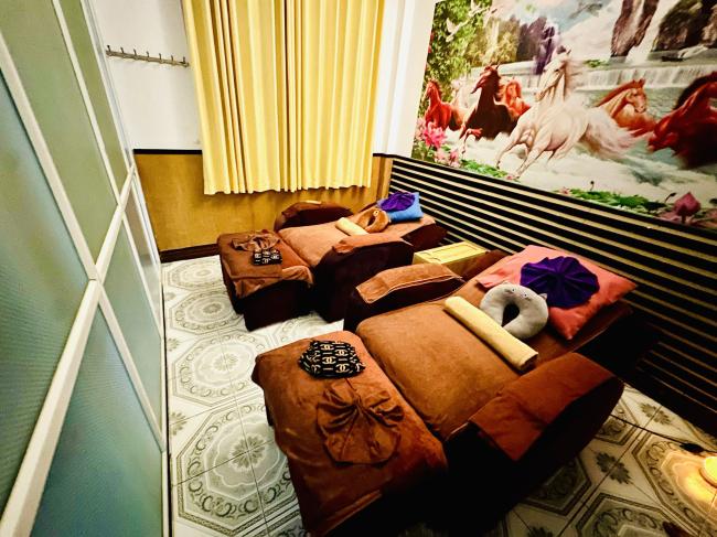- THAI MASSAGE: Kĩ thuật viên sử dụng toàn bộ cơ thể để kéo căng và tác động lên các cơ và khớp trên cơ thể , kết hợp cùng với các loại dầu thiên nhiên mang đến cảm giác thư thái, loại bỏ căng thẳng và trị liệu hiệu quả.